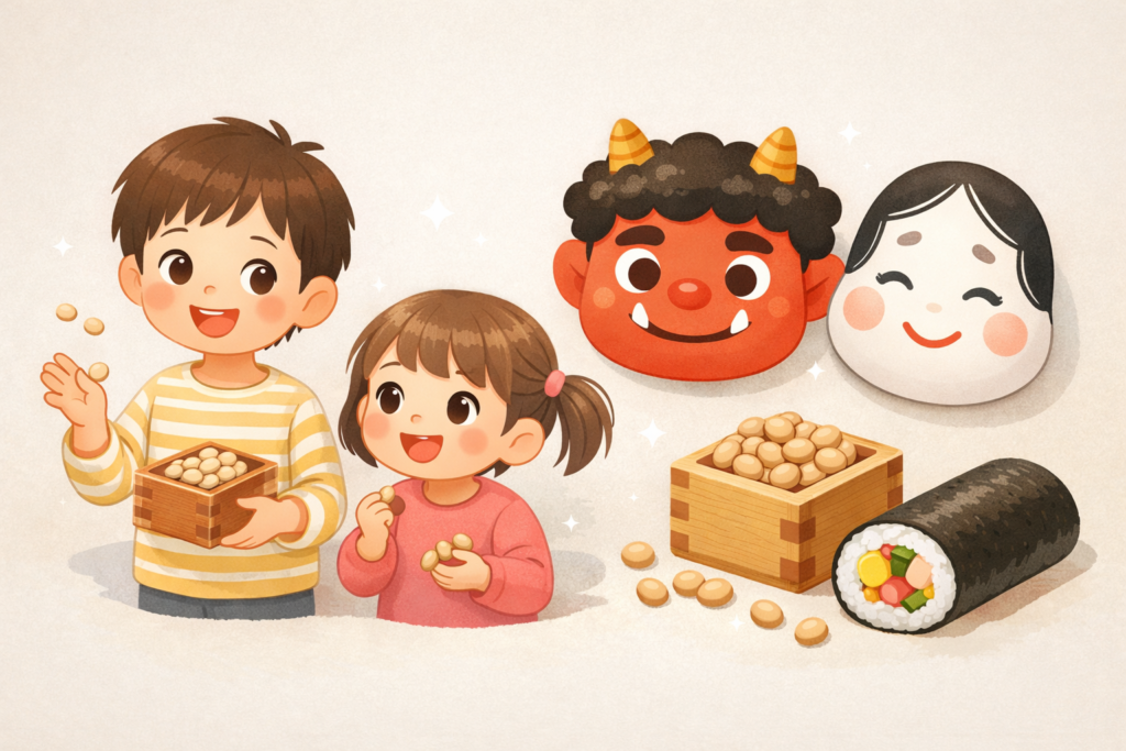 節分が近づくと、「今年はどうしようかな」と、少し考えてしまうことがあります。 豆まきや鬼のお面、恵方巻きなど、やること自体はシンプルなはずなのに、いざ家庭でや...