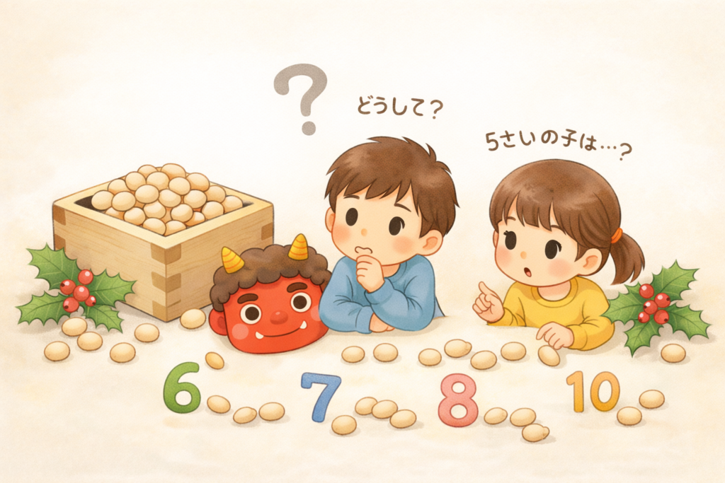 節分が終わったあと、豆を食べる場面で「これ、何個食べるの?」と子どもに聞かれて、少し困ったことはありませんか。 「年の数だけだよ」と答えながらも、「どうして?...