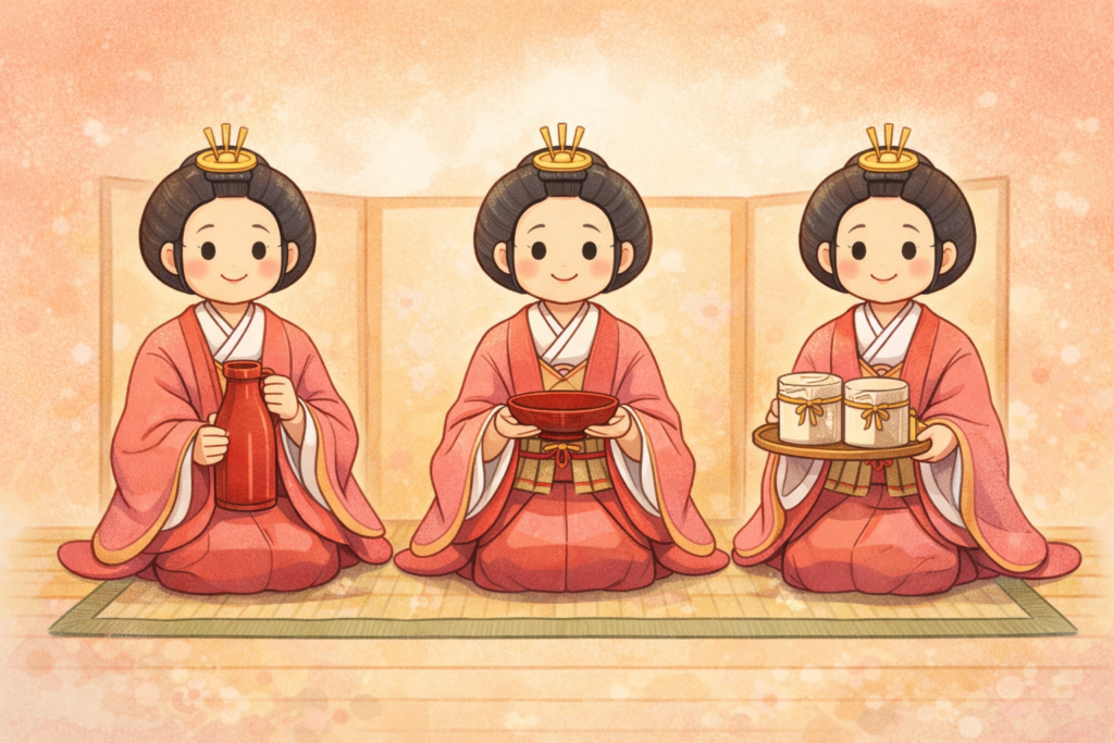 三人官女は、結婚式の場で主役を助けるお手伝い役です。