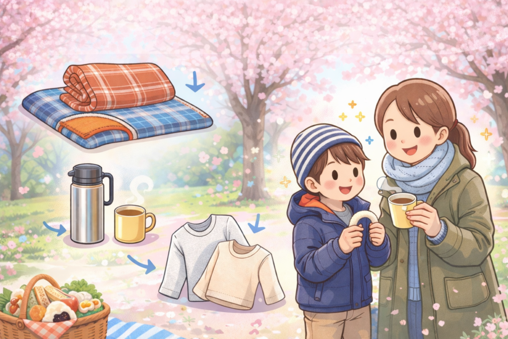 お花見は長時間外にいることが多く、日差しが弱まると一気に寒く感じますよね。